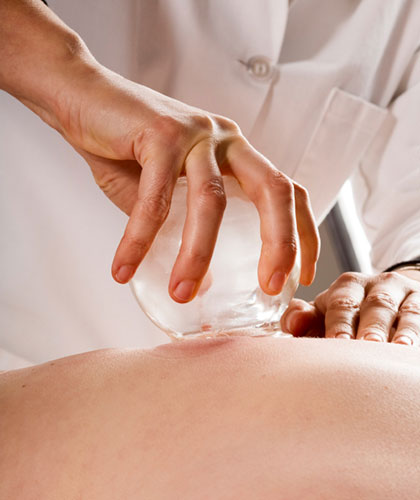 Beim Schröpfen werden die Punkte mit Schröpfgläsern stimuliert. Die Schröpftherapie eignet sich vor allem für die Behandlung der äusseren Schichten wie Muskeln und Haut.